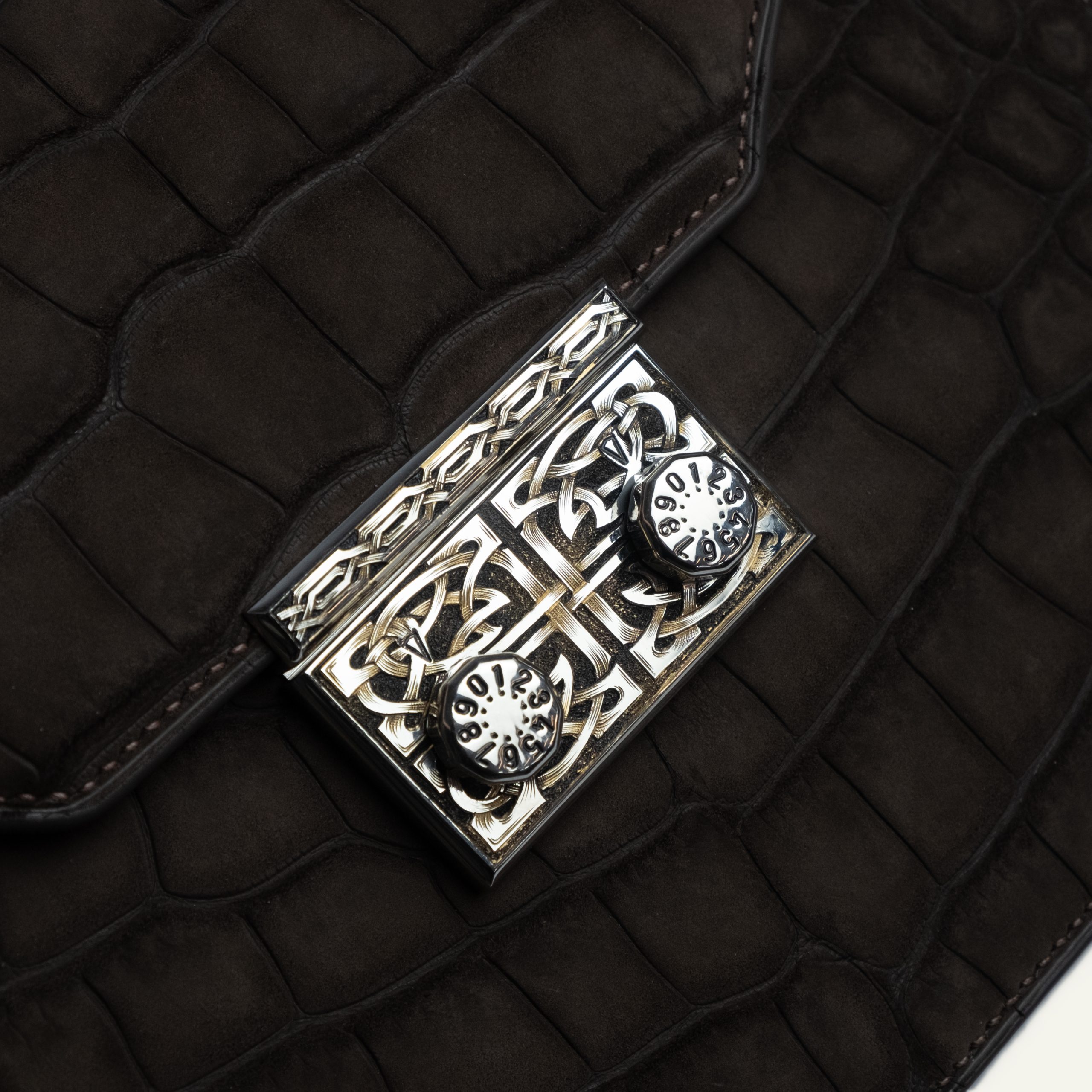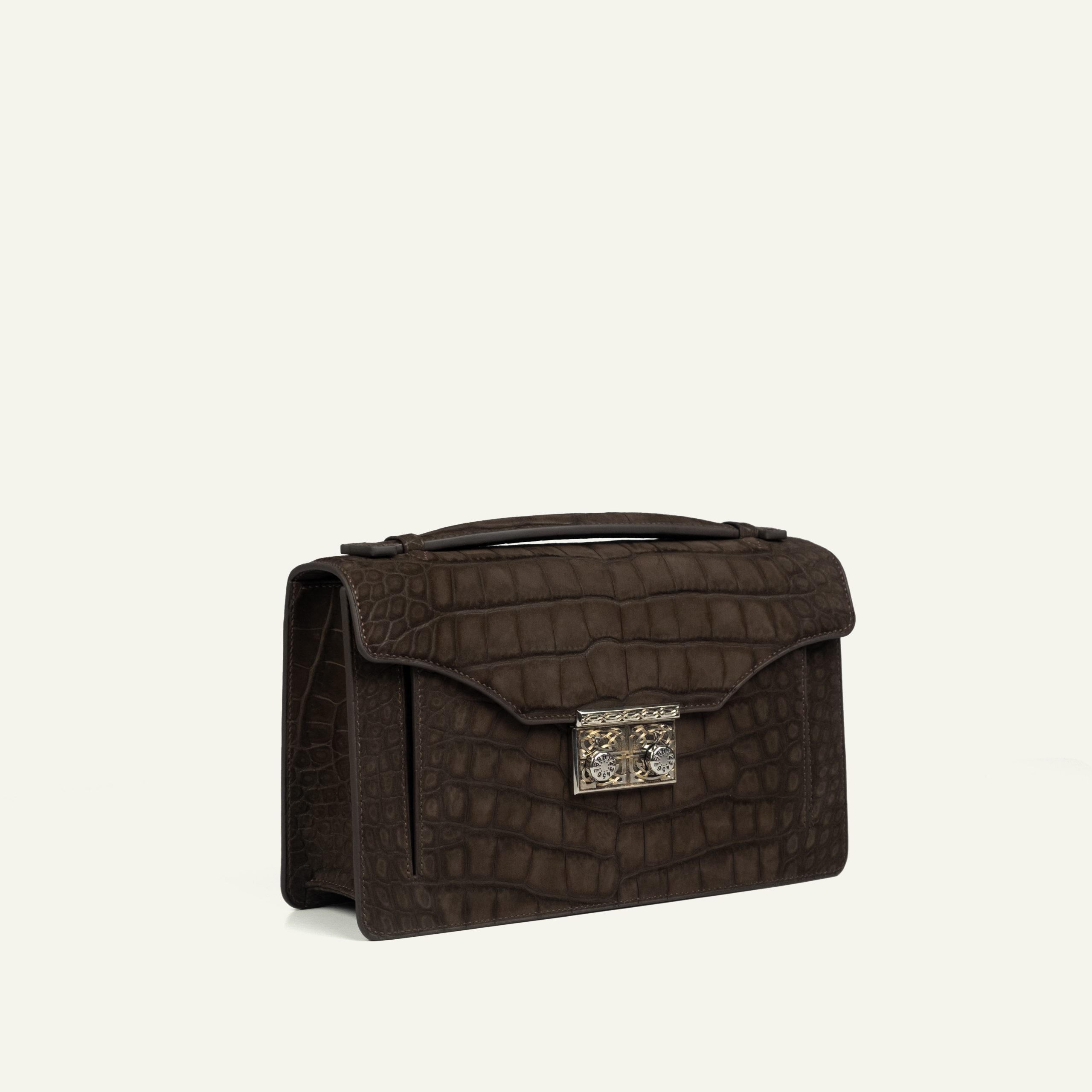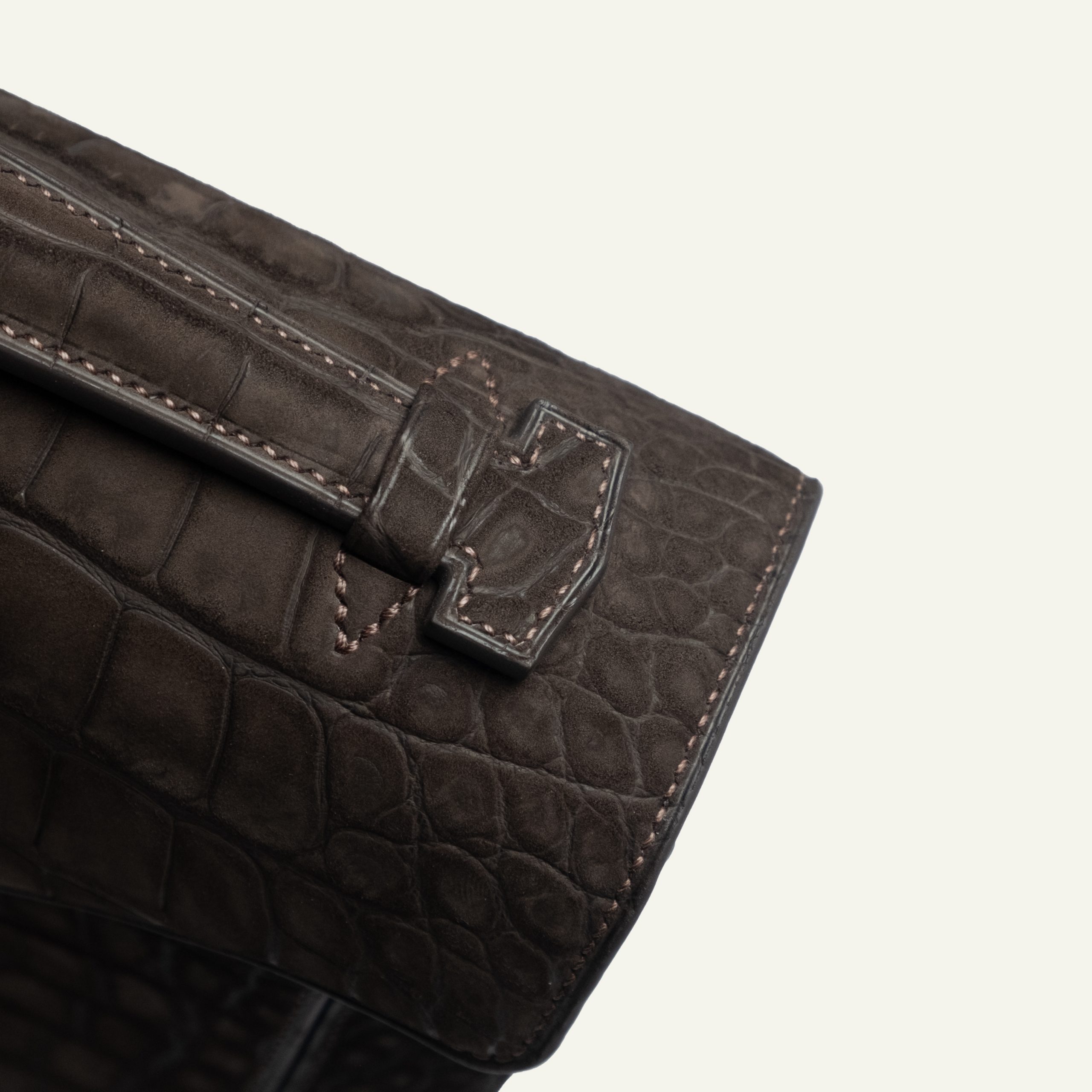 Nubuck crocodile leather embraces a classically elegant silhouette with an unexpected softness — the surface smooth as velvet, yet beneath it lies a natural grain shaped over millions of years, no two hides ever the same. It is this quiet singularity that holds the deepest luxury Quyn Artisan places into every piece.