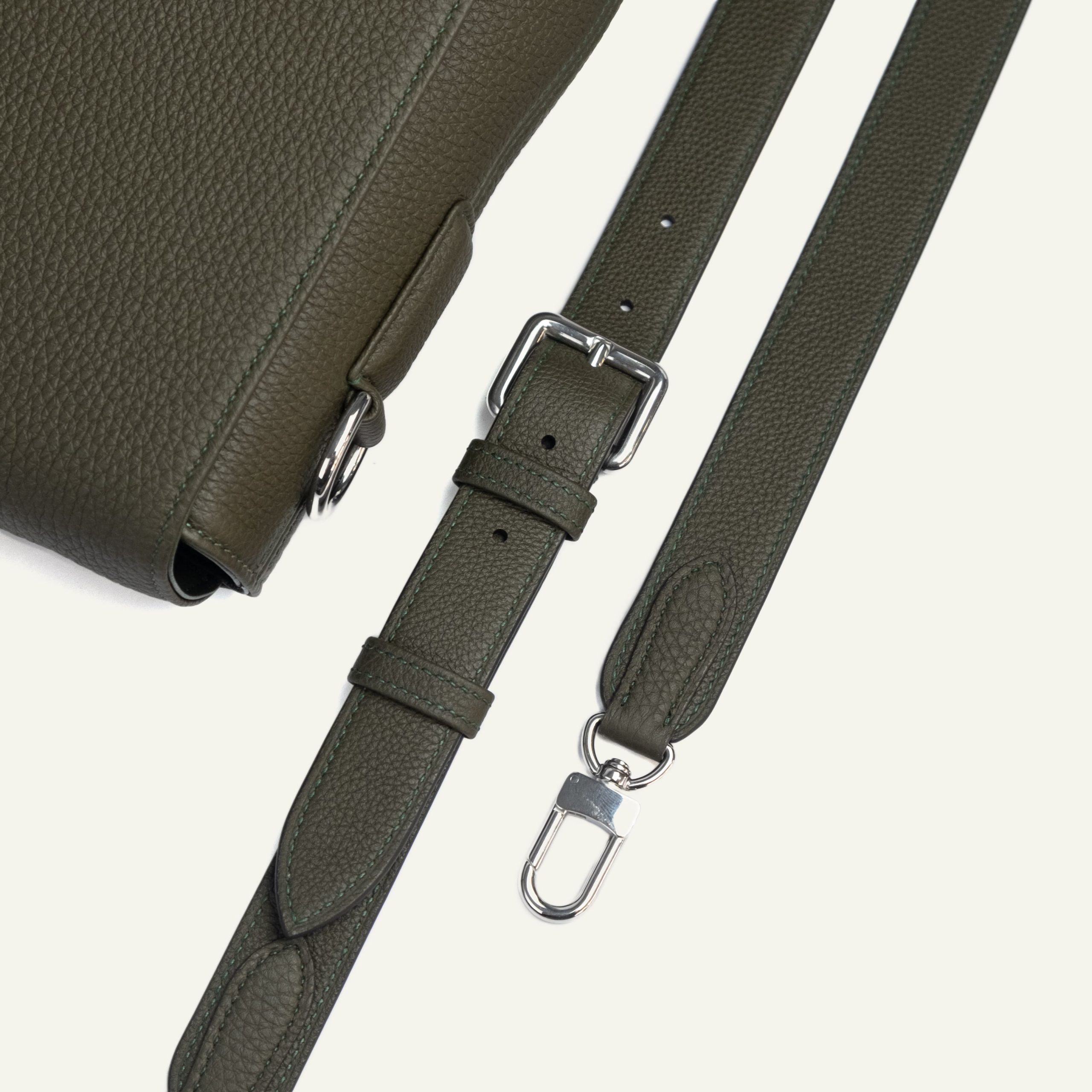 Leather is a material that carries the whispers of time. Its true value is revealed only when an artisan ‘awakens’ it, balancing tension and texture with masterful restraint.This philosophy defines the Horsen Crossbody. Set against premium Odessa calfskin, the Olive shade offers a serene, sophisticated aesthetic—bold enough to stand out, yet timelessly neutral. With a structured and symmetrical design, the Horsen remains impeccably poised, no matter how fast your day moves.