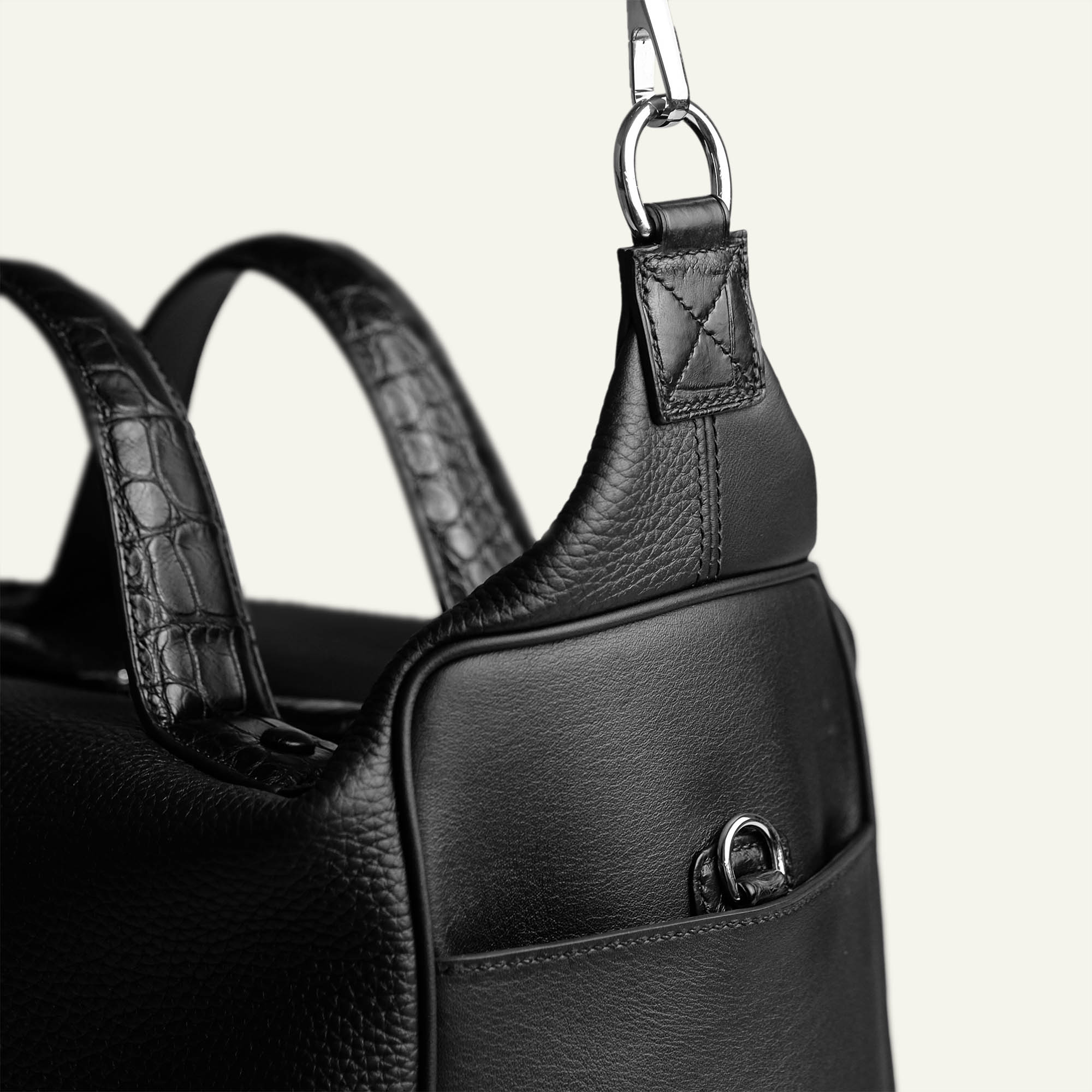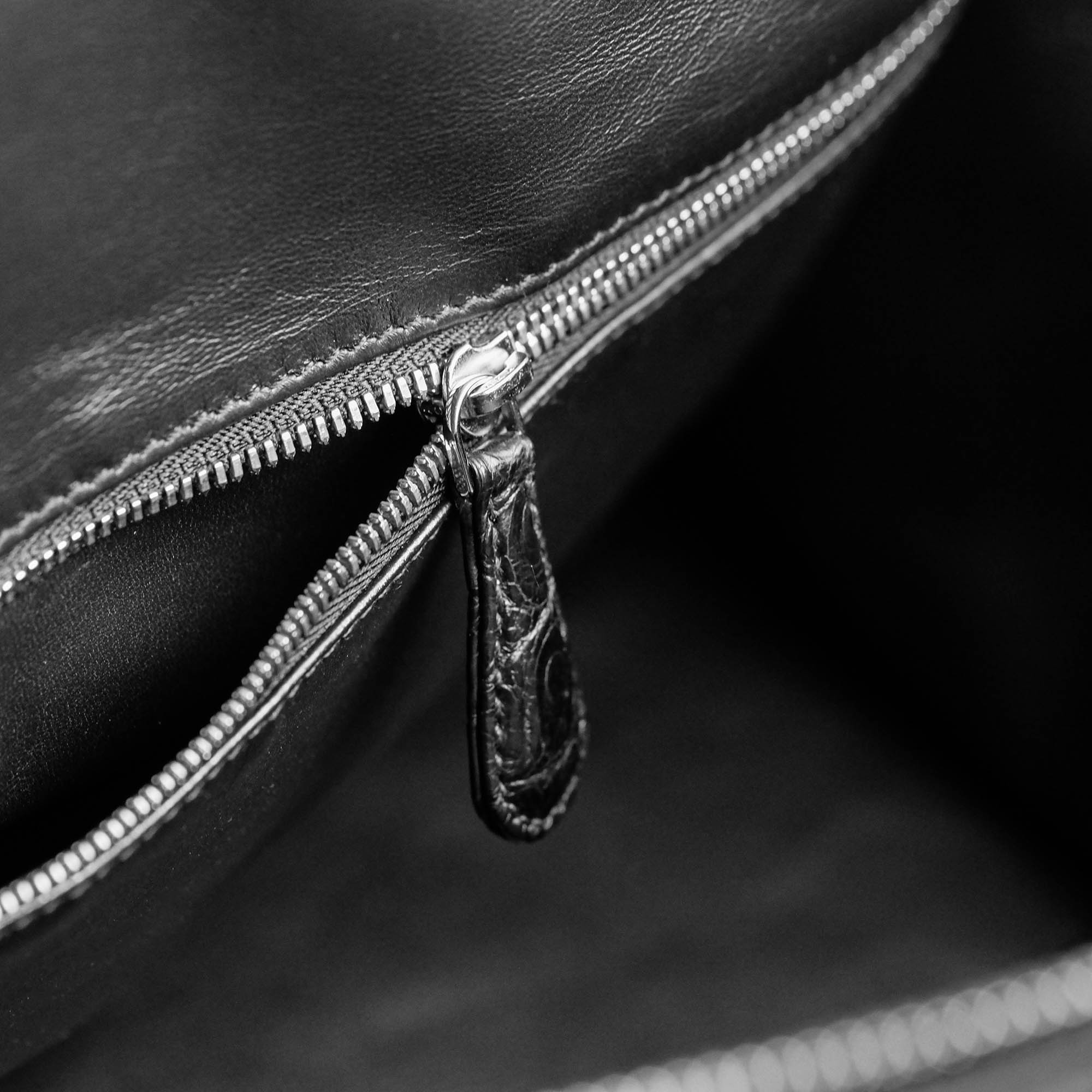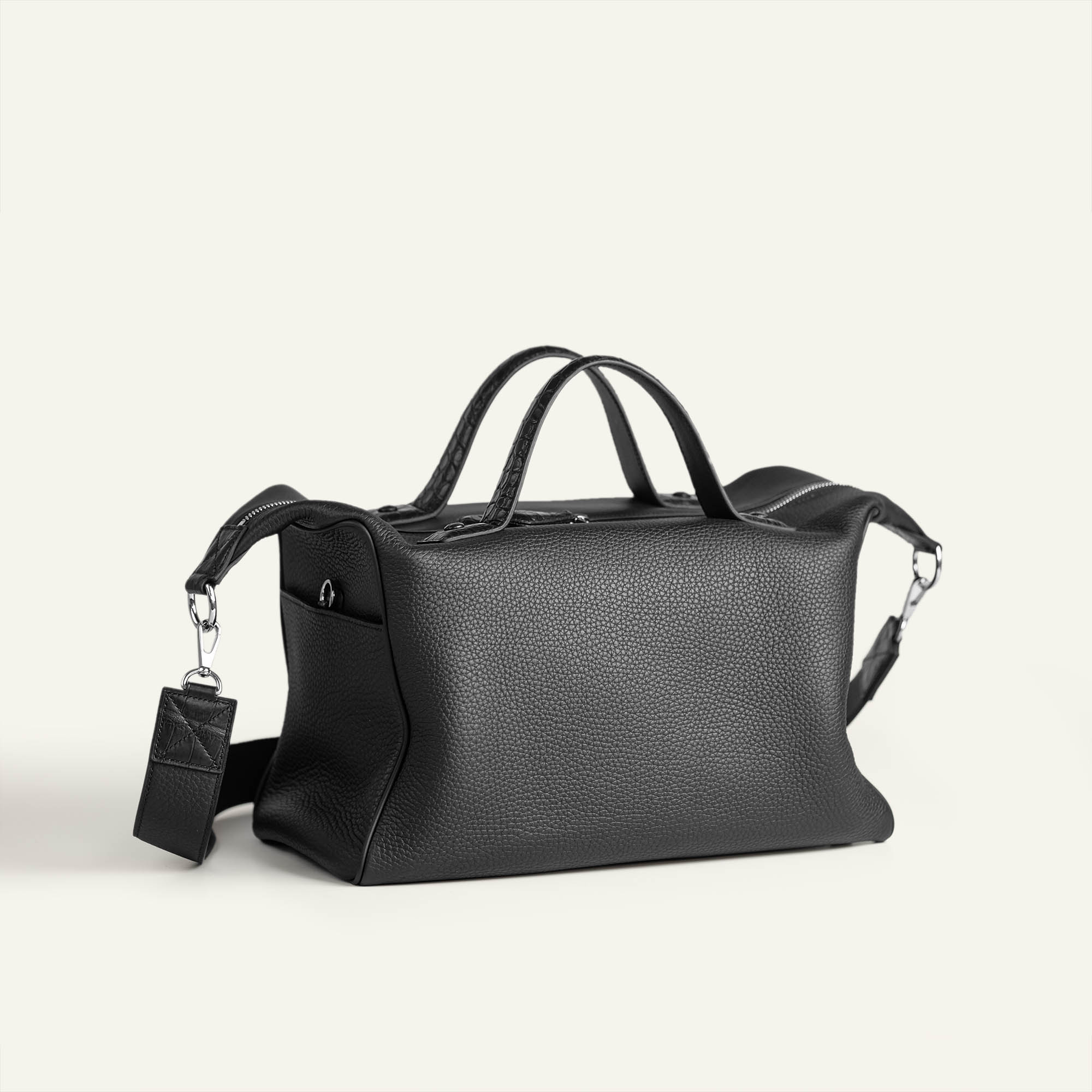Sở hữu thiết kế hướng đến sự linh hoạt và tiện dụng, chế tác vẫn giữ được nét thanh lịch cố hữu của phương thức chế tác thủ công thông qua từng chi tiết. Tay cầm bọc da cá sấu tạo điểm nhấn sang trọng, trong khi dây đeo bản rộng mang đến sự thoải mái trên vai. Khóa kéo kim loại sắc sảo, từng đường khâu tay chắc chắn; tất cả hòa quyện trong một tổng thể cân bằng – vừa phóng khoáng, vừa tinh tế.